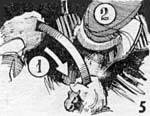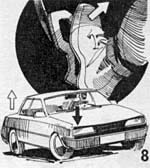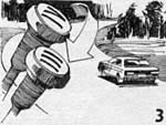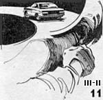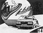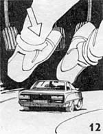 Реагируя на занос с опозданием при закрытом дросселе, вы рискуете вызвать занос в противоположную сторону. Не ждите его возникновения и опережайте рывковым рулением в тот момент, когда автомобиль меняет направление заноса и как бы "зависает" в неустойчивом положении. |