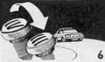 Если вас развернуло в заносе на 180 градусов, тотчас выключите сцепление, а если не успели, поверните рулевое колесо до упора в сторону вращения. Так вы "довернете" автомобиль до угла 360 градусов и сможете вновь двигаться в прямом направлении |