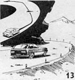 При подходе к повороту попытайтесь определить крутизну дуги (категорию поворота) и его сложность (длину дуги, форму искривления, характер покрытия, наличие обочины, наклон полотна дороги, вид неровностей). Сосредоточьтесь, чтобы не ошибиться и не занизить категорию поворота. |