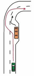Секрет торможения в повороте заключается в том, чтобы полностью исключить блокирование колес, а добиться этого можно только неинтенсивным, осторожным торможением. Это торможение является разновидностью плавного способа, его особенность заключается в невысоком постоянном усилии, позволяющем снизить скорость лишь незначительно, на 5-20 км/ч. А значит, если скорость превышена на 40-50 км/ч, этот способ не поможет преодолеть критическую ситуацию. В таких случаях необходимы более эффективные приемы высшего мастерства: торможение боковым скольжением, или вращением автомобиля.