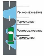 Однако действия при остром лимите времени требуют автоматизма навыков, и даже мелкие ошибки могут привести к потере устойчивости и управляемости. Поэтому чем ниже квалификация водителя и его профессиональный опыт, тем раньше и с большим опережением должны начаться действия, включающие подготовительные операции. Они не смогут повысить тормозной эффект, но создадут запас времени для выполнения основных приемов и исключат грубые ошибки, которые возникнут при интенсивном торможении.