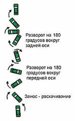 Разворот вращением вокруг задней оси (см. прием 39)-"полицейский разворот".