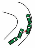 Причиной возникновения заноса большой амплитуды почти всегда является грубая ошибка водителя (неготовность к экстренным действиям, торможение с длительным блокированием колес, резкий непрогнозируемый маневр, "доворот" на дуге поворота и др.). Если компенсаторные действия не выполнены в начальной фазе потери устойчивости (см. прием 35), то занос усиливается и в конечном итоге может привести к вращению автомобиля.